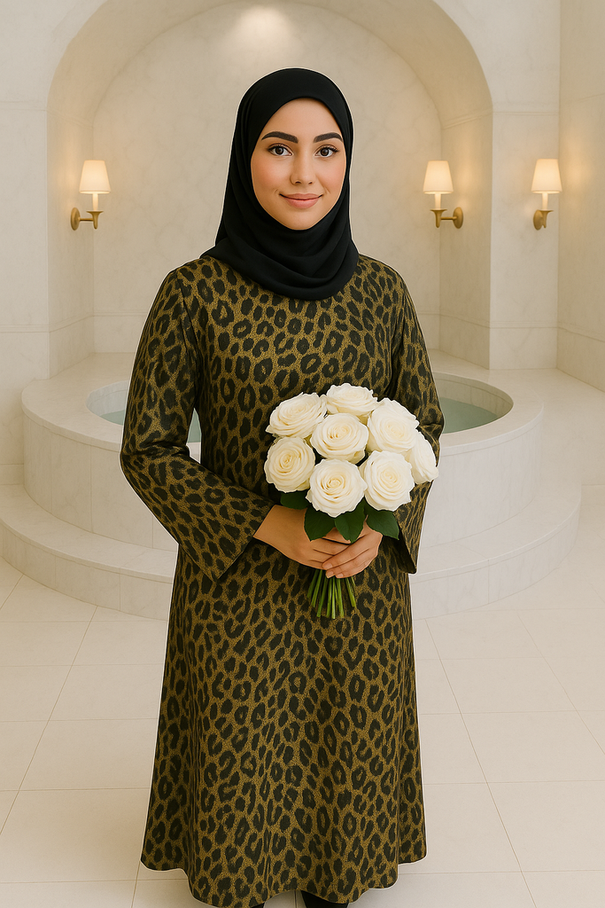Embrace elegance and tradition with the Black & Gold Leopard Abaya & Hijab Set, a luxurious 2-piece outfit handcrafted in Dubai for the modern modest woman. Thoughtfully designed for comfort and sophistication,