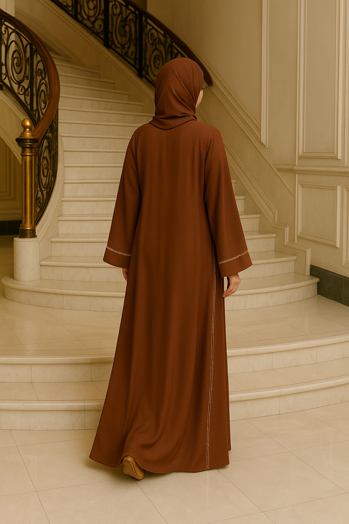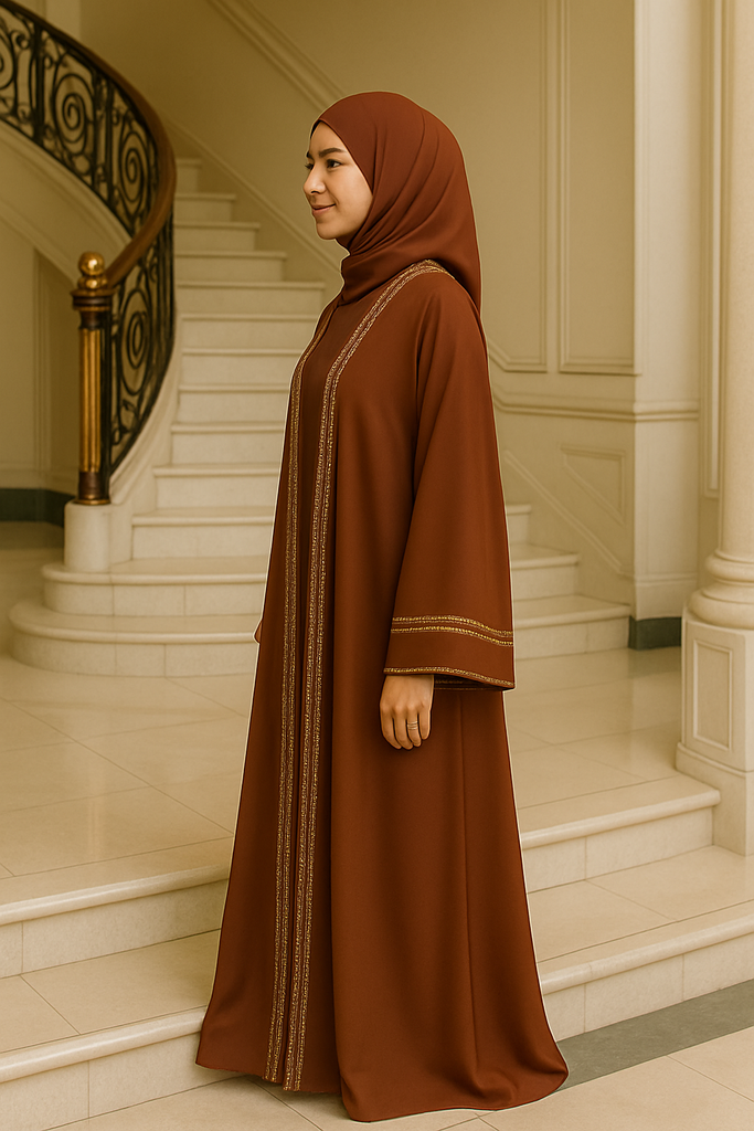 Embrace elegance and tradition with the Royal Brown & Gold Abaya & Hijab Set, a luxurious 4-piece outfit handcrafted in Dubai for the modern modest woman. Thoughtfully designed for comfort and sophistication,