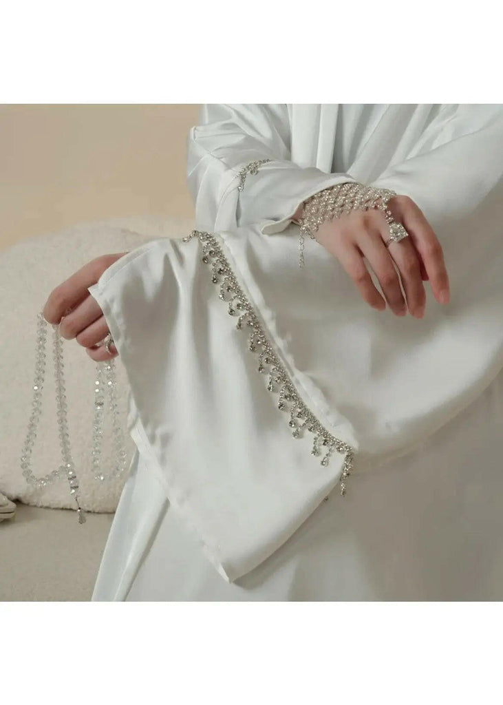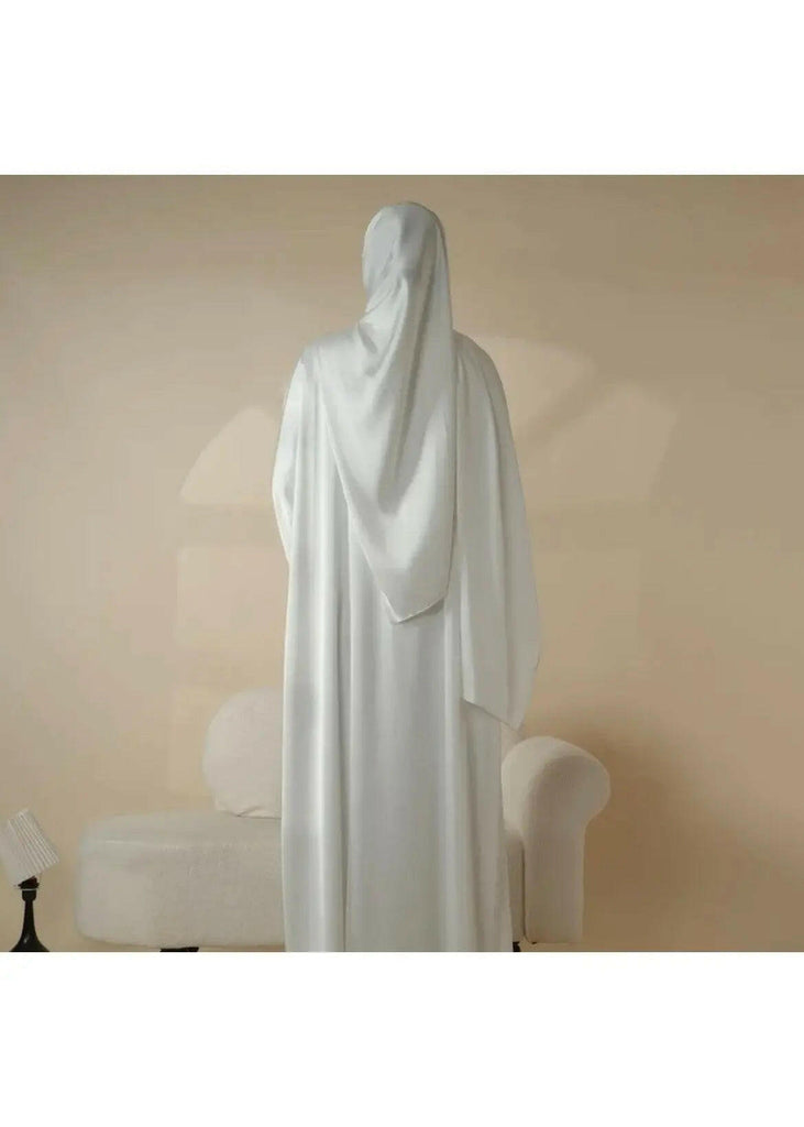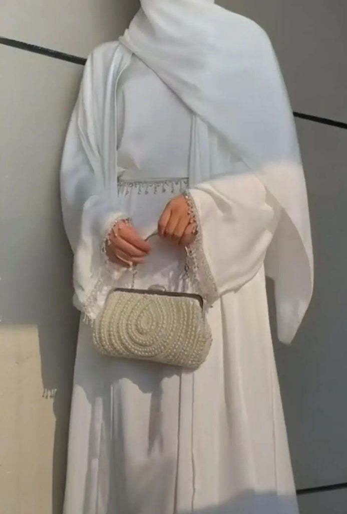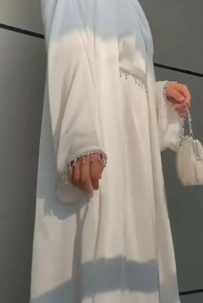 This 4pc white abaya is one of serene elegance and purity. The luxurious fabric, delicate embroidery, and sleek design all combine to create a truly stunning Abaya design that's perfect for weddings,nikkah,special occasions or everyday wear.