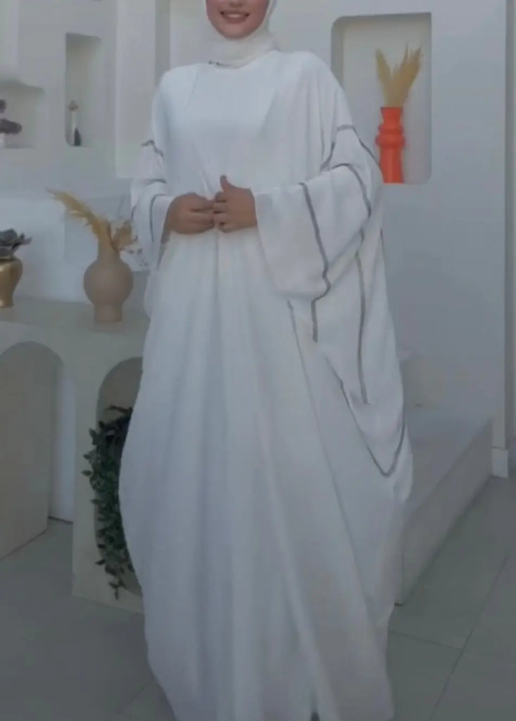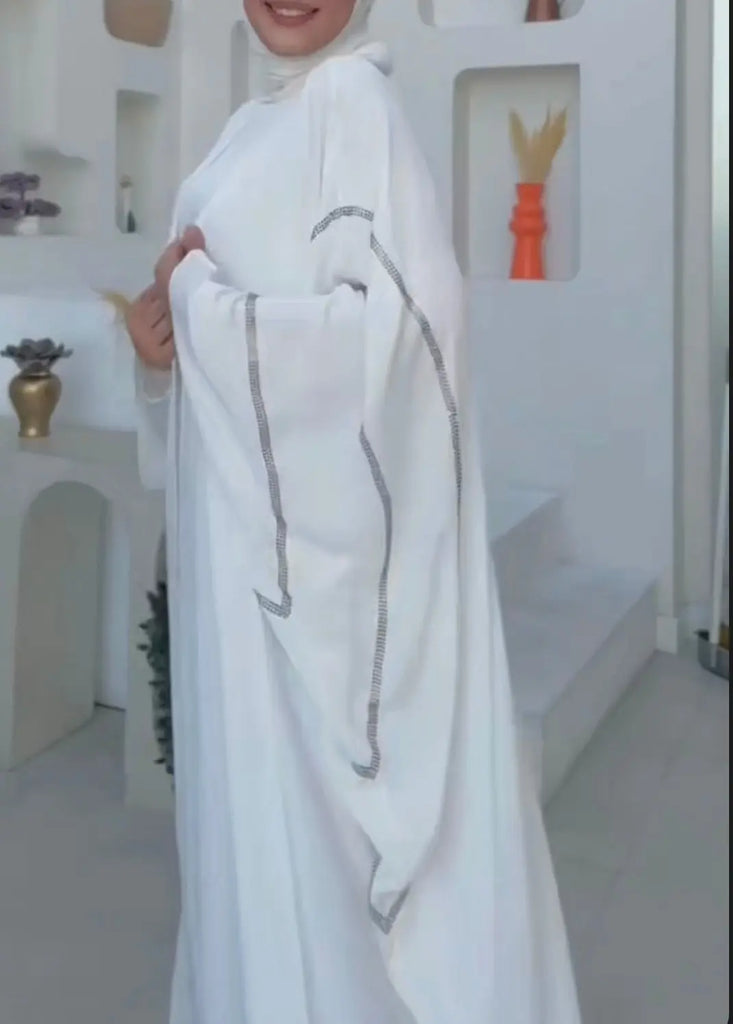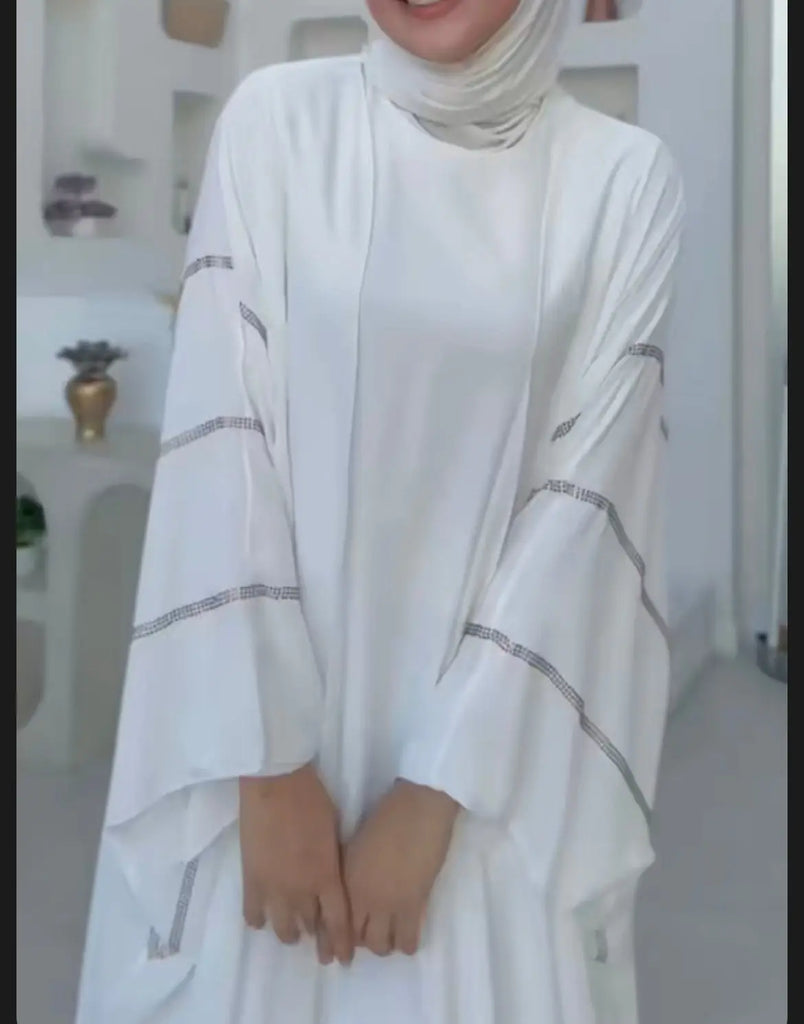 Make your wedding day unforgettable with our Embroidered White Abaya, designed with exceptional detail for the woman who values grace and grandeur. Featuring luxurious hand embroidery along the sleeves, hem, and bodice—this abaya is a masterpiece of craftsmanship. The soft white fabric flows effortlessly, while the embellished touches shimmer softly in the light, offering a regal yet modest appearance. Ideal for Nikah ceremonies, wedding receptions, or bridal photo shoots.