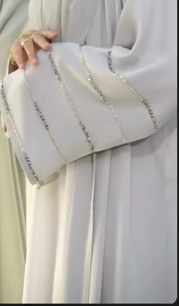 Turn heads with our white glittery abaya, perfect for weddings, Eid, and formal events. Modest, luxurious, and designed to shine with elegance.