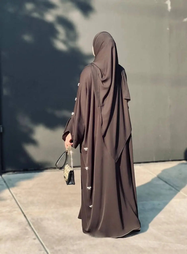 Step into refined luxury with our Brown Abaya, made from glossy satin fabric that drapes beautifully and catches the light with every movement. The deep brown shade evokes warmth and strength, while its polished finish makes it the perfect choice for evening events, Eid celebrations, or formal modest occasions. A true wardrobe jewel for women who favor both elegance and modesty.