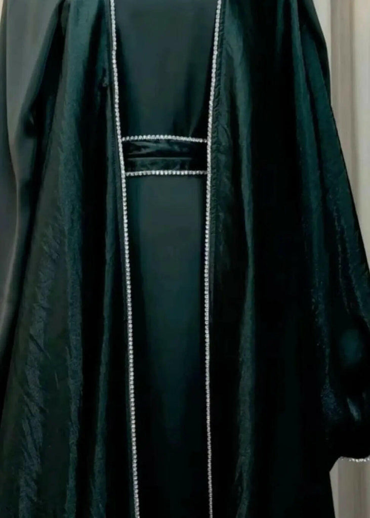 4-teiliges, vorne offenes Abaya in Smaragdgrün, hergestellt in Dubai für den Alltag und besondere Anlässe