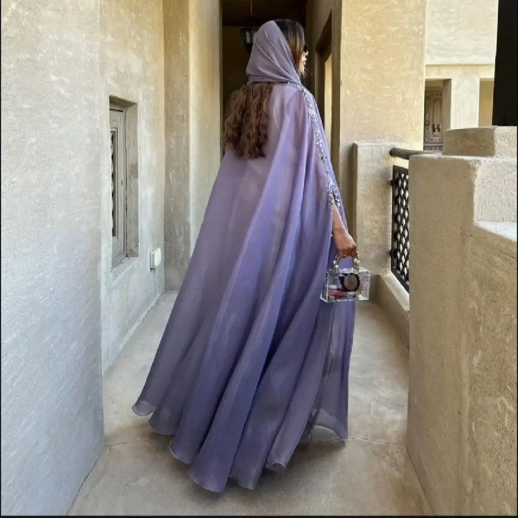 Keywords: Lavender Abaya, Hijab Set, Handmade in Dubai, Modest Fashion, Elegant Islamic Wear.